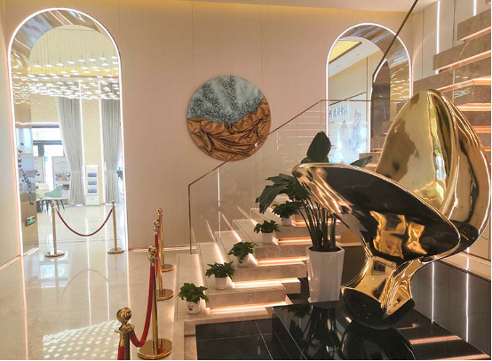 營銷中心體驗區(qū)的施工特點及難點主要在于異形不銹鋼的施工、材料種類多導(dǎo)致加工工序多、石材旋轉(zhuǎn)樓梯難度大等方面,深圳千里馬裝飾集團有限公司施工隊伍不畏困難,堅持“工匠精神”不動搖,把品質(zhì)、工期和客戶滿意度放在第一位,給客戶提交了一份滿意的答卷。